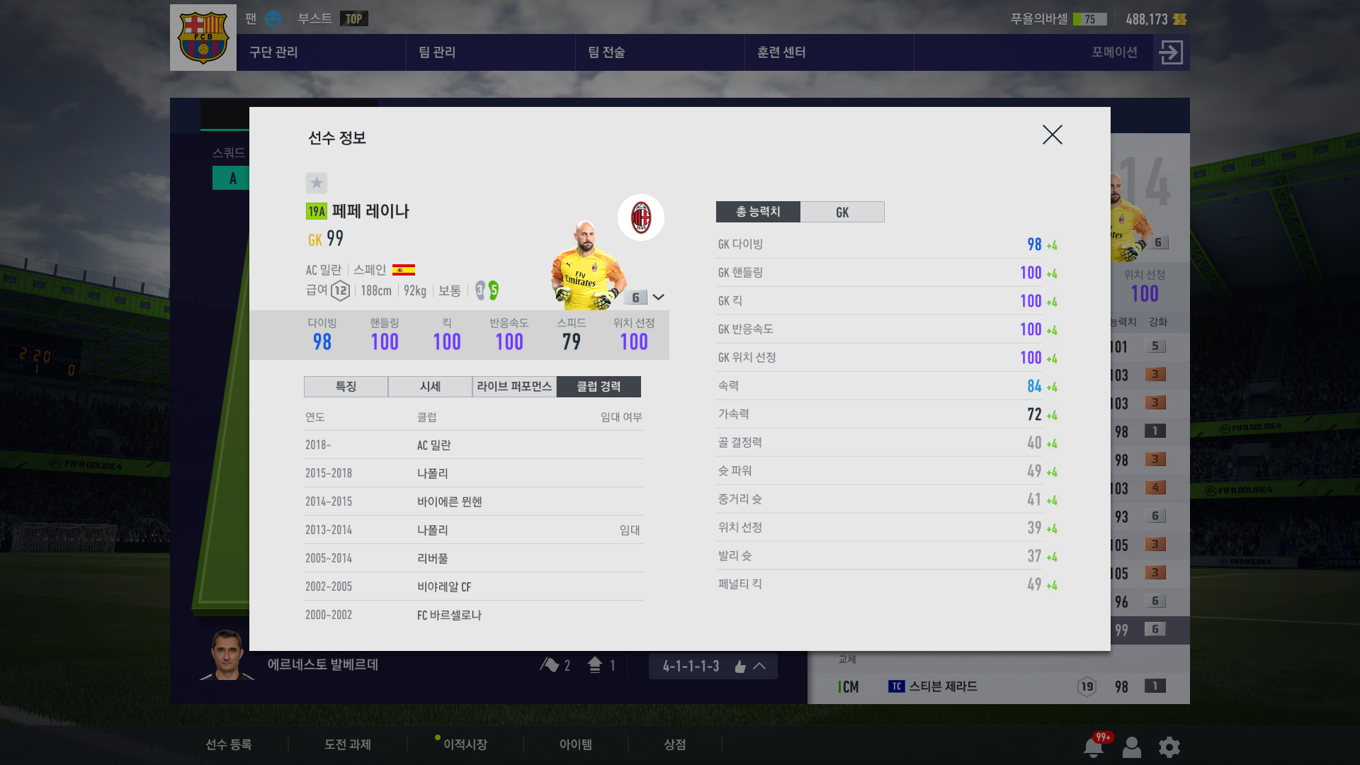 ac밀란과 바셀에 둘다 팀케미를 받는 적페 키퍼 페페레이나.
